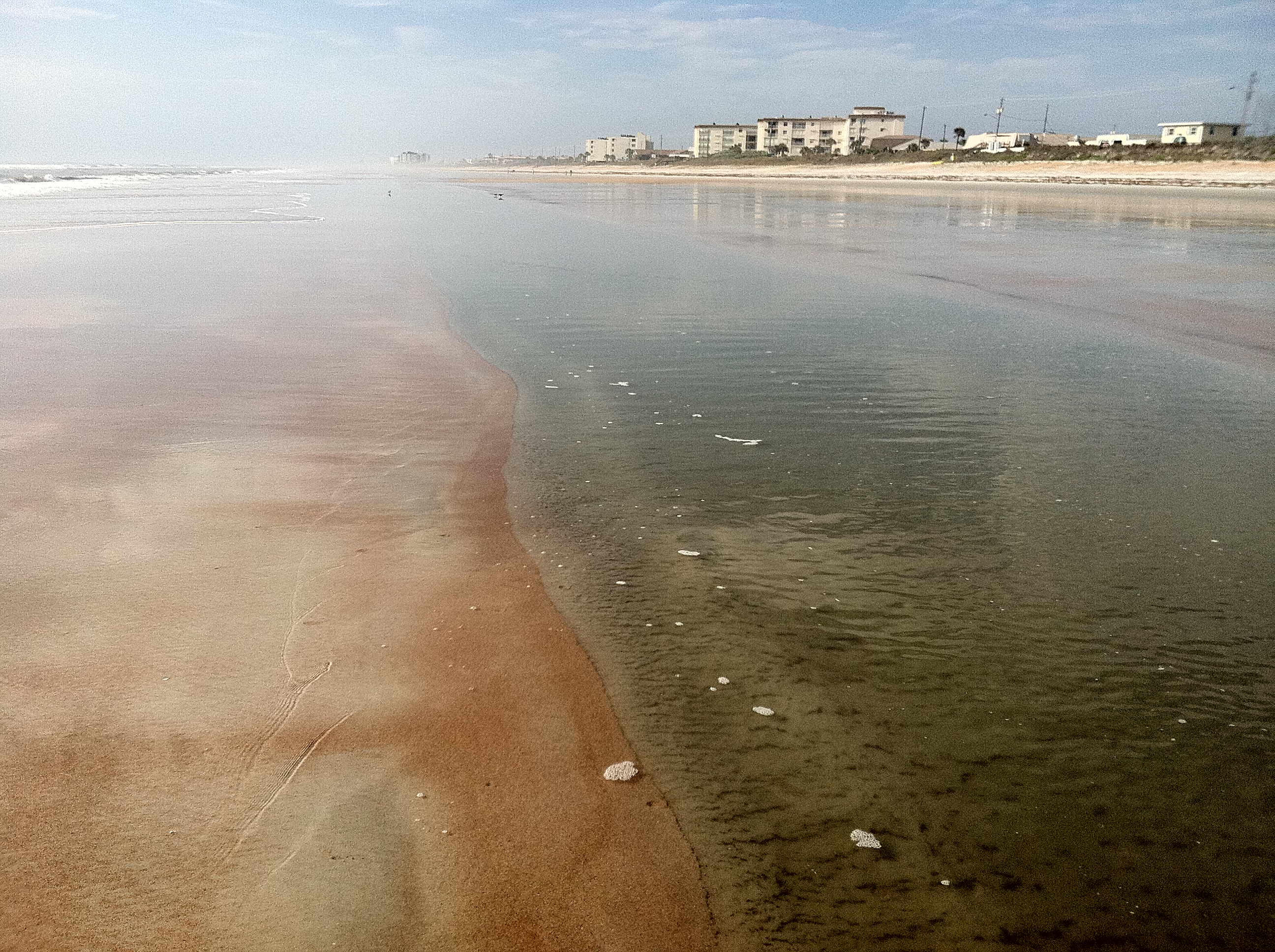 Another interesting result of several days of wind-driven rough water are tidal pools. These are formed by pounding water where the wave lasts breaks, leaving a hollowed out depression in the sand which remains full of water as the tide retreats. Being shallow, they warm up fast, the water is still and clear, and they are great for young folk (and old) to play in. It’s like a natural infinity pool. They are also great little laboratories, often containing small fish, crustaceans, shells, sunglasses, and snorkeling gear.