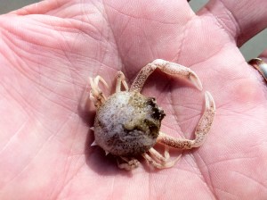 Check out this little guy. I don’t know what kind it is, and I don’t see them too often, probably because they are so well camouflaged, and are ocean-dwellers, not beach. This one had succumbed, probably recently, and I found him in a couple of inches of water in one of the tidal pools. Amazed at the structure of the tiny thing, the claws, legs, joints, carapace, markings, and inside, a heart, circulatory system, etc., all miniature, but fully functional (when alive.) So complex and beautiful. Yet again I was reminded of the Watchmaker Analogy, a teleological argument that essentially states that design implies a designer. The argument has been shot full of holes, of course, since it’s introduction centuries ago, but all you need to do is spend some time absorbed in nature and all its intricacies, and you become less certain of rational explanations. I’m just saying.
