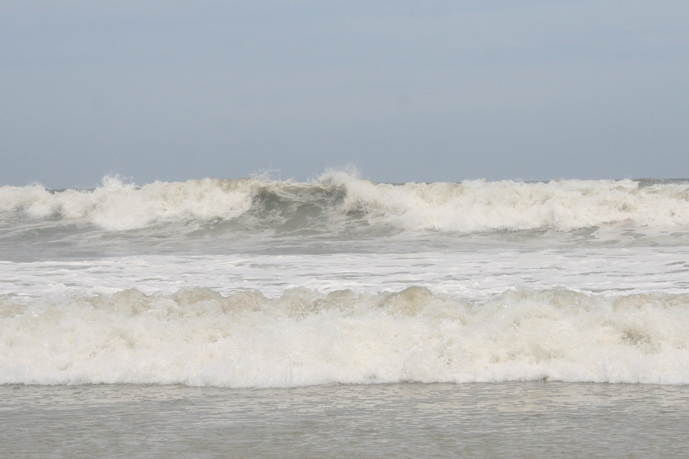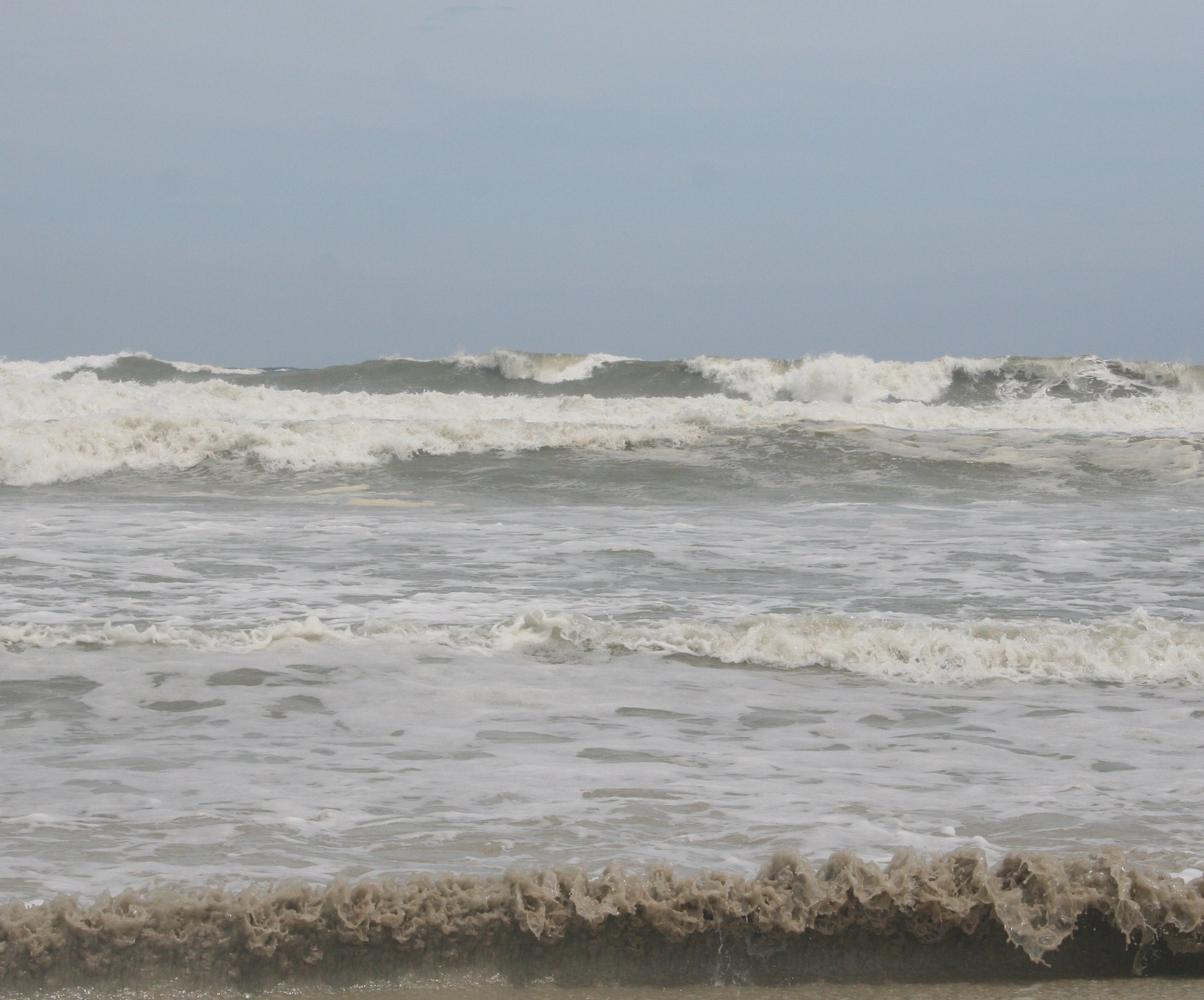 10 a.m.: sustained winds at 12-15 now; waves in the 10-foot range and completely out of control. You can clearly see the force of the surge coming in. Poor wave form for surfing, but fun to watch; couldn’t paddle through the white water if we felt so inclined, and we don’t.