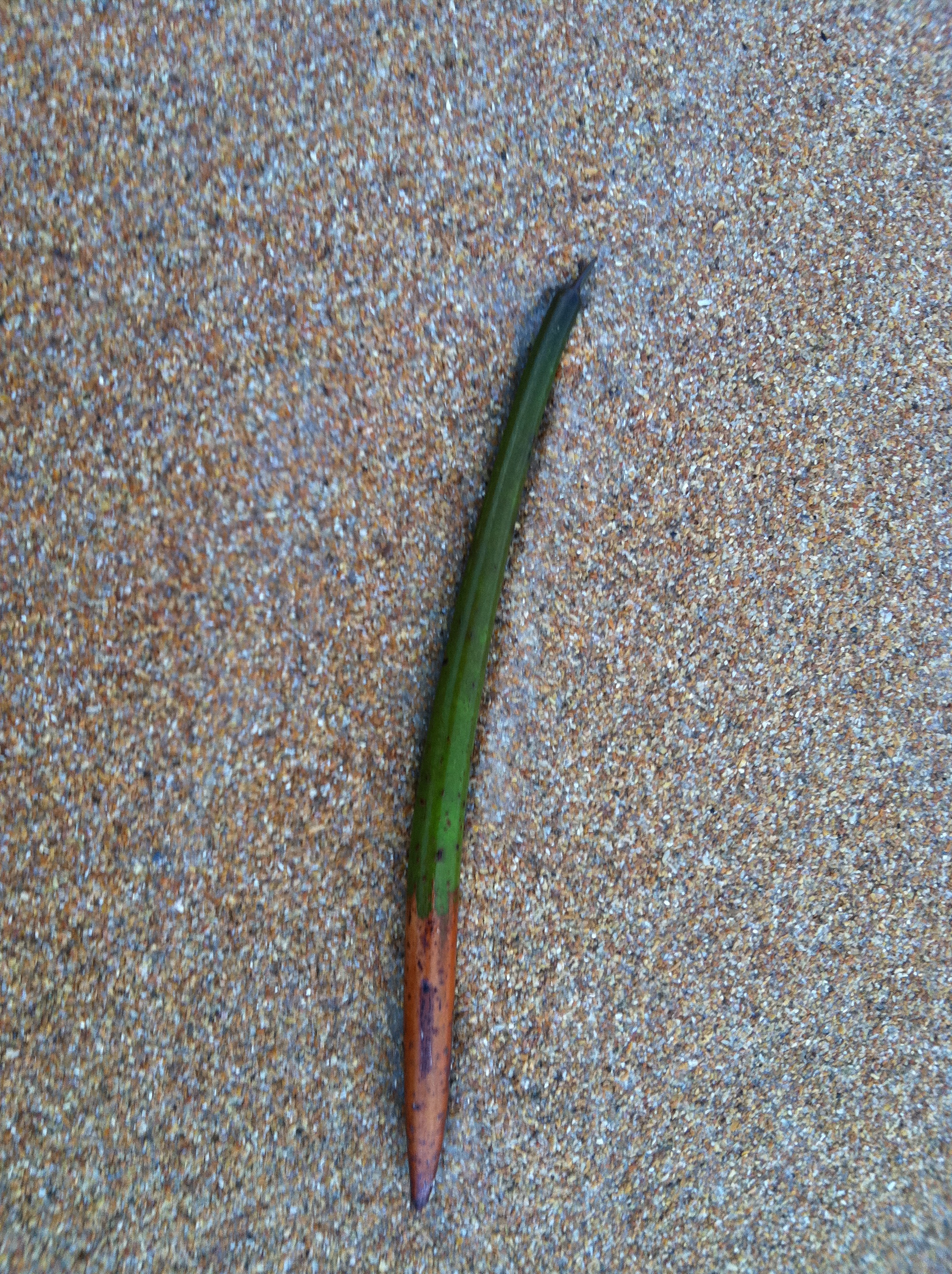 And for about two weeks now, hundreds of these mangrove seed pods have been present every morning. We call them seed pods, but they are actually called propagules, and are not seeds at all but fully mature plants. They are, in essence, little mangrove trees. They develop and hang like dangling ornaments on living mangrove plants in estuarine shallows, eventually dropping off to float away with wind and current. In water, they float vertically, with the fat end down, much like a fishing bobber, and, in fact, can be used as such in a pinch. When one reaches suitable shallows, it embeds and starts growing.
