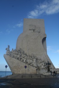 edge dating from the early 16th century, which was part of the early defense system for Lisbon. It was apparently originally situated in the water, but a devastating earthquake in 1755 changed the geography of the waterfront, along with much of Lisbon, and now the tower sits on the bank. Much to see on the waterfront, including this beautiful monument to Henry the Navigator, (1394-1460) one of Portugal’s most famous heroes, who ushered in the great era of Portuguese rule of the seas. Henry was the third child of King John the First of Portugal, and as a young man fought with his father and brothers to expel Barbary pirates from the