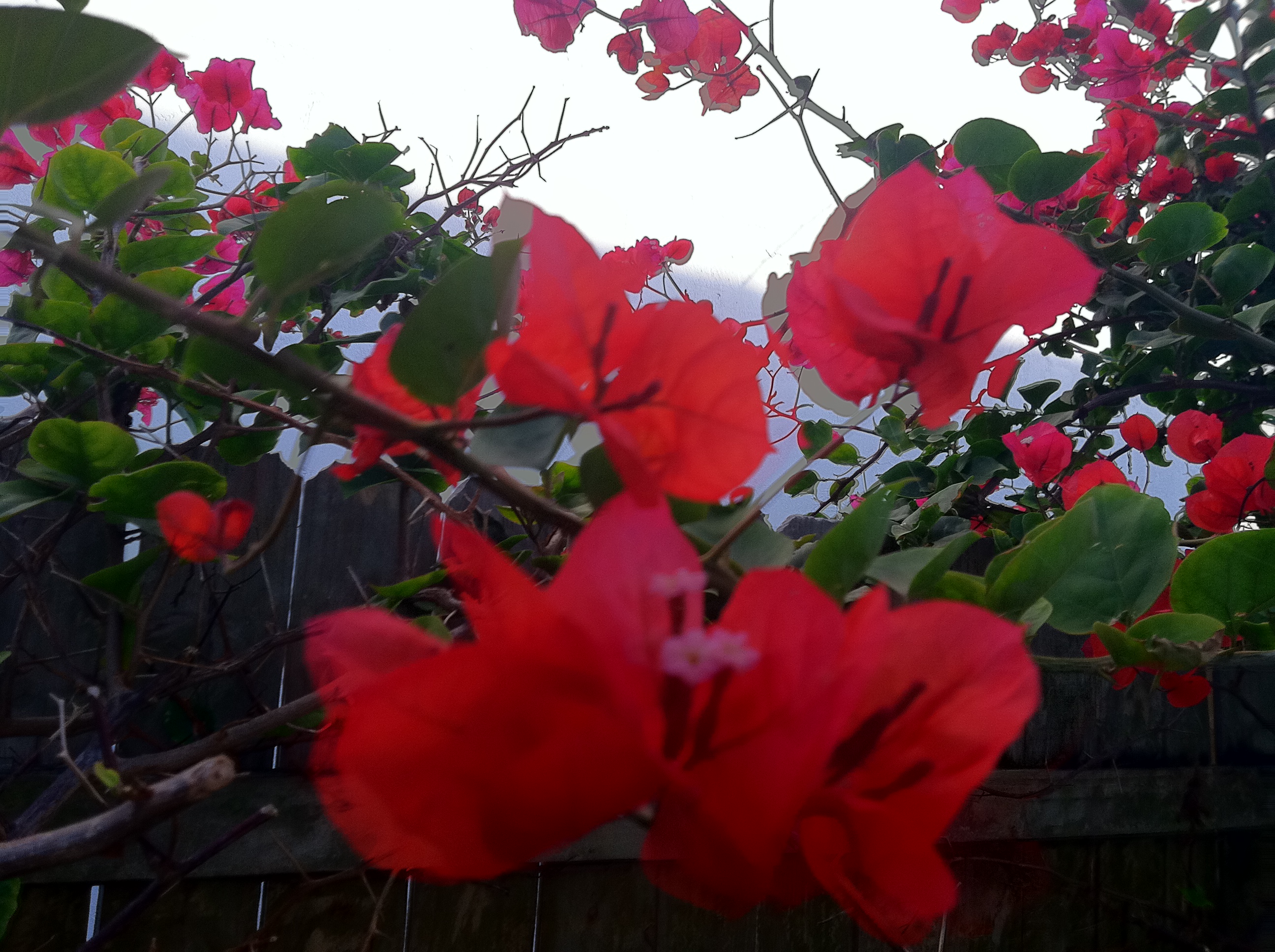The Bougainville is blooming madly, and we are going around in shorts at seven in the morning. Most unusual. We have some nice lettuce up, along with the old, persistent rosemary, and some dill, parsley, and cilantro, and we are tempted to plant the whole spring garden, but there lurks the memory of February and even March freezes, so we will hold off. There is no rush, after all.