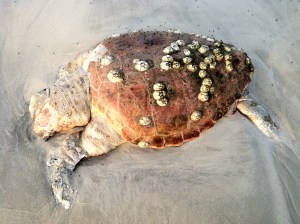 A day later there was this Loggerhead turtle, quite dead, having been deposited by a retreating tide early in the morning. It’s hard to determine age just looking, but the barnacles say it had some years on it. They can live two-hundred years and more, so who knows. Of great fascination to me is the fact that the females always return to the beach on which they were hatched to lay their own eggs. We didn’t learn the gender of this one, but assuming it’s a female, it could have been depositing eggs on this stretch of beach beginning in the Second Spanish Period. A long time, but still the blink of an eye.