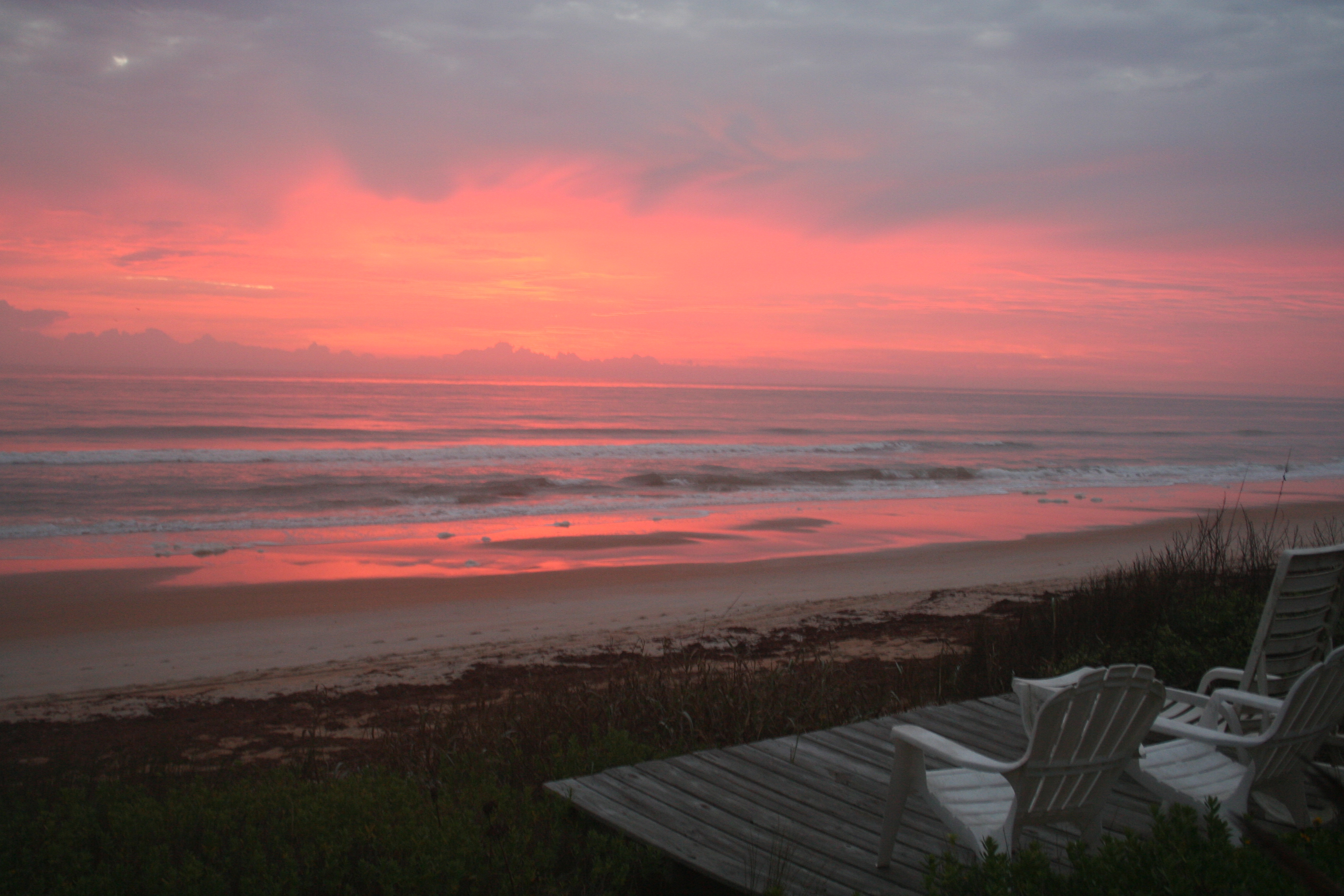 Several mornings, the sunrise was nothing short of spectacular, with just the right placement of clouds to hold and spread the intense coloration. Afterwards, the light seemed unusually playful in and outside the house, imbuing both furniture and living things with a sharp-edged glow. The geraniums, in particular, were radiant. I think