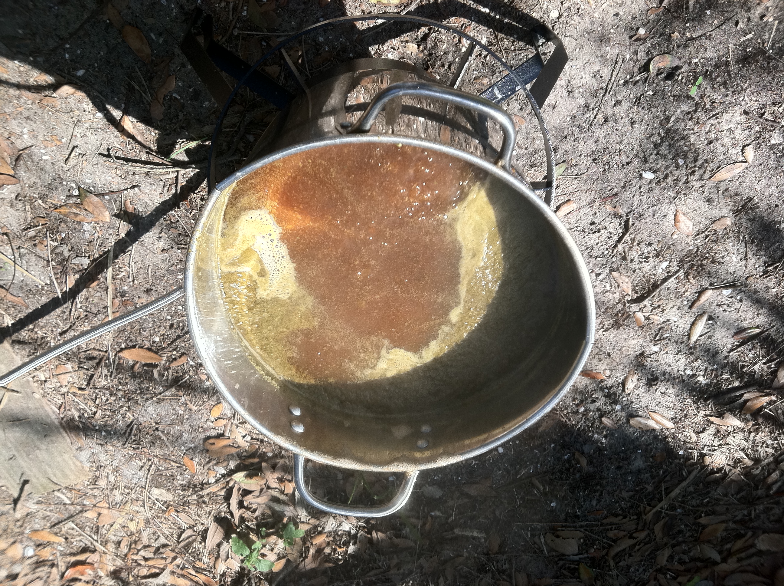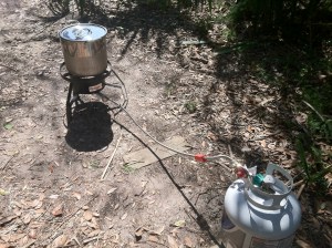 Here goes. We started by setting up our propane cooker back in the hammock outside, so