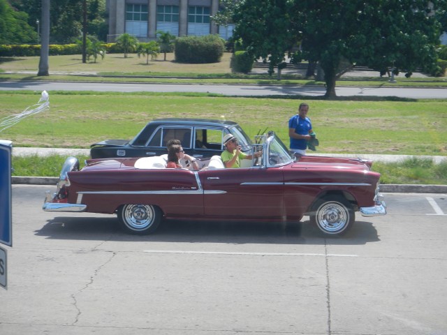 Everyone has heard about the 1950s American cars in Cuba, their preservation forced by the embargo, which curtailed all imports, but until you see them, you really have no concept of their numbers and condition.  They are literally everywhere in the country, the majority in Havana, but out in the countryside, as well.  With a number of other conditions in the country, they create the impression of a time-warp.  It is an extraordinary thing to see.  Outside the terminal were perhaps twenty-five of these cars lined up along the curb– Chevies, Fords, Plymouths, Cadillacs, Studebakers– in models ranging from the mid-forties to late fifties, mostly in pristine condition.  With a recent relaxation in the rules for self-employment, instituted by Raul Castro, individuals can go into any business they want, and many owners of these cars, and there are many, have become taxi drivers!  They are used extensively by the Cuban people, and visitors, as well.  More on transportation and general getting about in a later post.