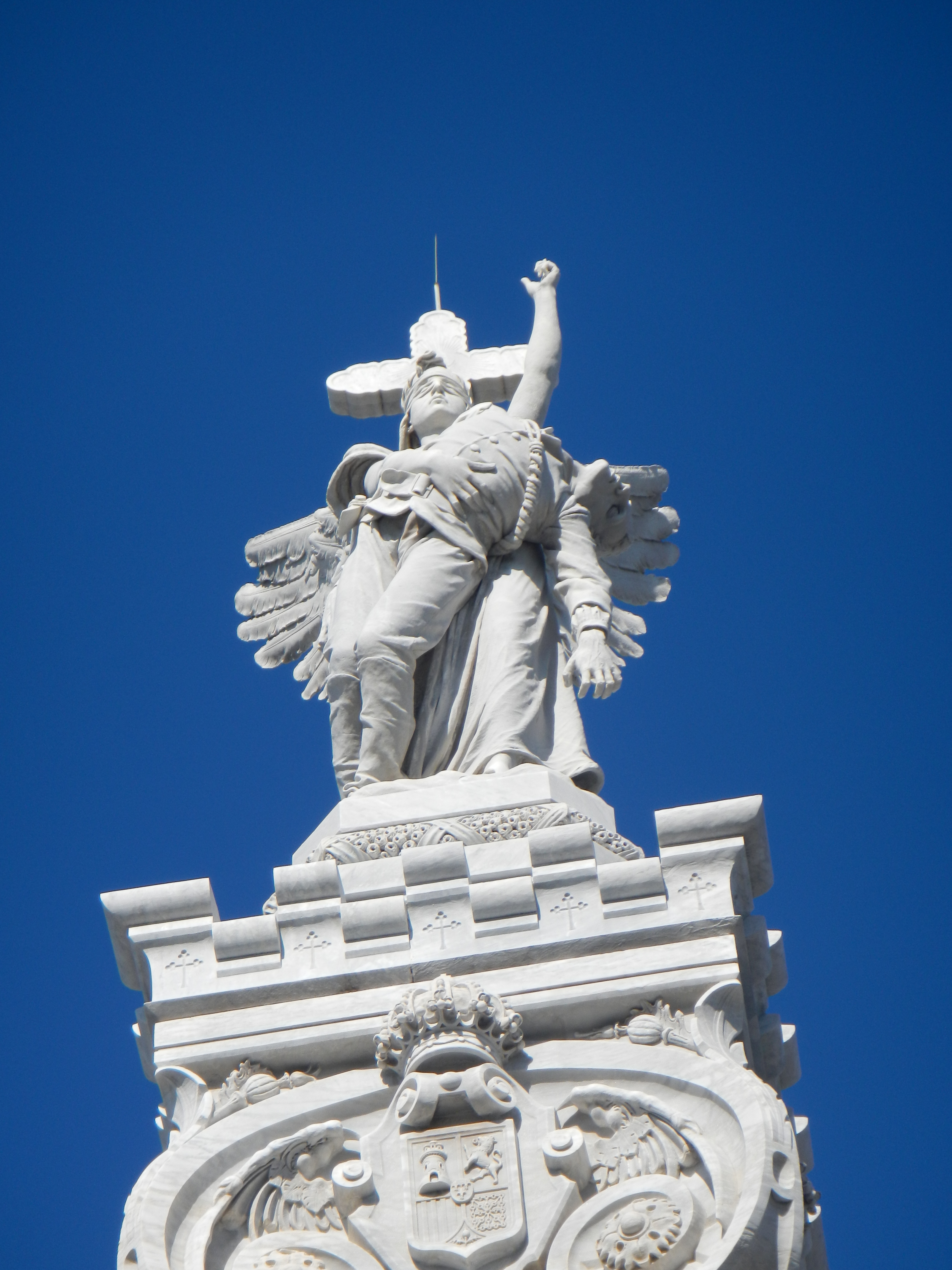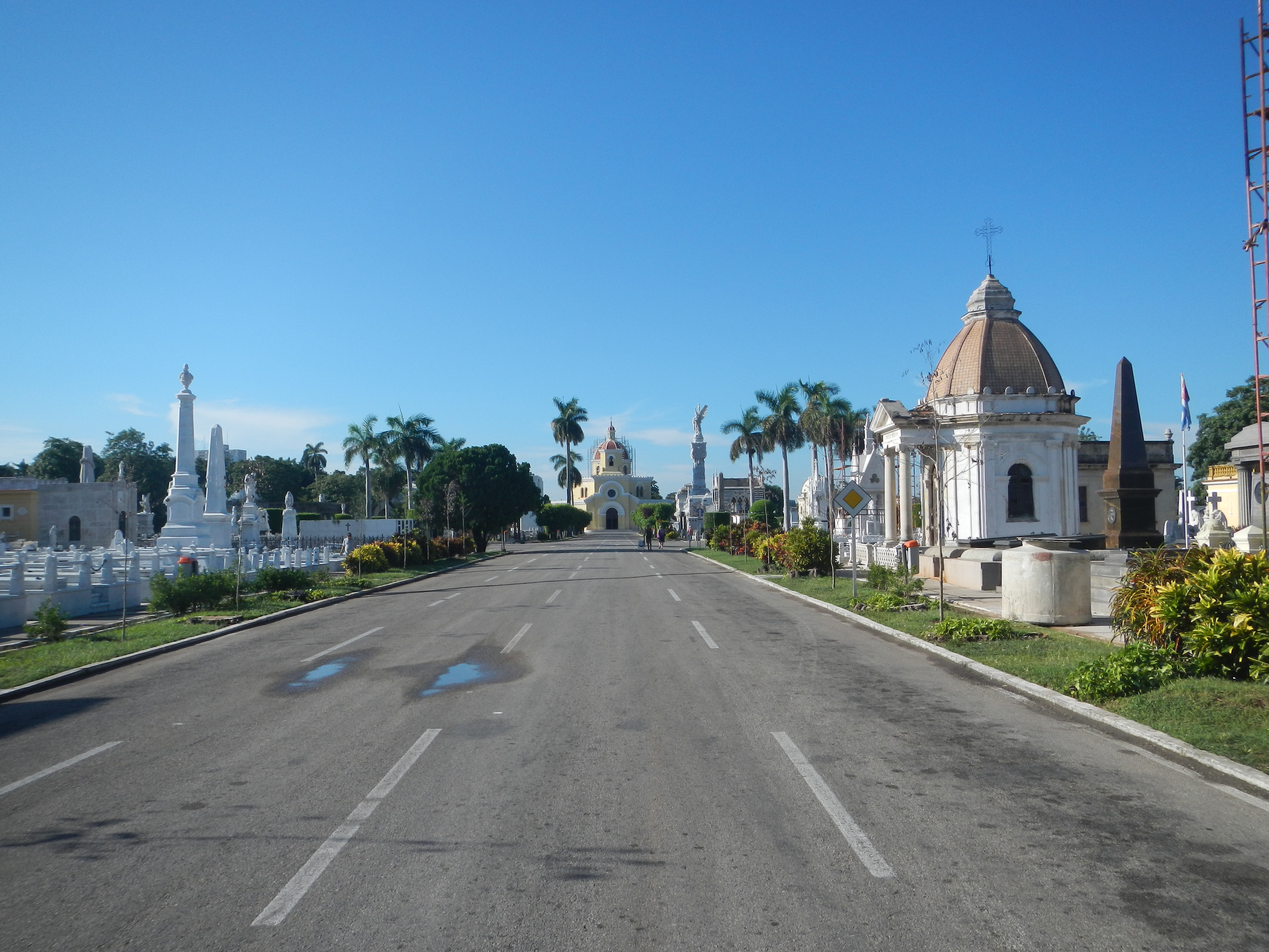 This was a full day of street art, starting with a tour of the Cementario de Cristbal Colon, which is as much outdoor museum as boneyard. We arrived early on a clear, warm, humid morning that promised to be a scorcher, and bring on the inevitable afternoon thunderstorms. Our guide was a feisty little woman employed by the cemetery, who had an opinion on just about everything, and wasn’t afraid to express it. We learned that the 140 acre cemetery, in the Vedado section of Havana was founded in 1876. It contains 800,000 graves and over 1 million internments, with 500 major mausoleums, chapels, and family vaults. The supposed bones of Christopher Columbus were at one time interred there, before being moved to the Cathedral in Seville, which we saw last year.