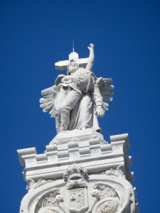 There were many elaborate monuments in the cemetery, including this one dedicated to firefighters killed in a late 19th century warehouse fire. The owner of the building, a corrupt city official, was storing ammunition and explosives in the warehouse, but he told firefighters there was nothing inside. Twenty were killed in the ensuing explosion, but the official got off with a slap on the wrist. Incensed citizens raised the money for this memorial.