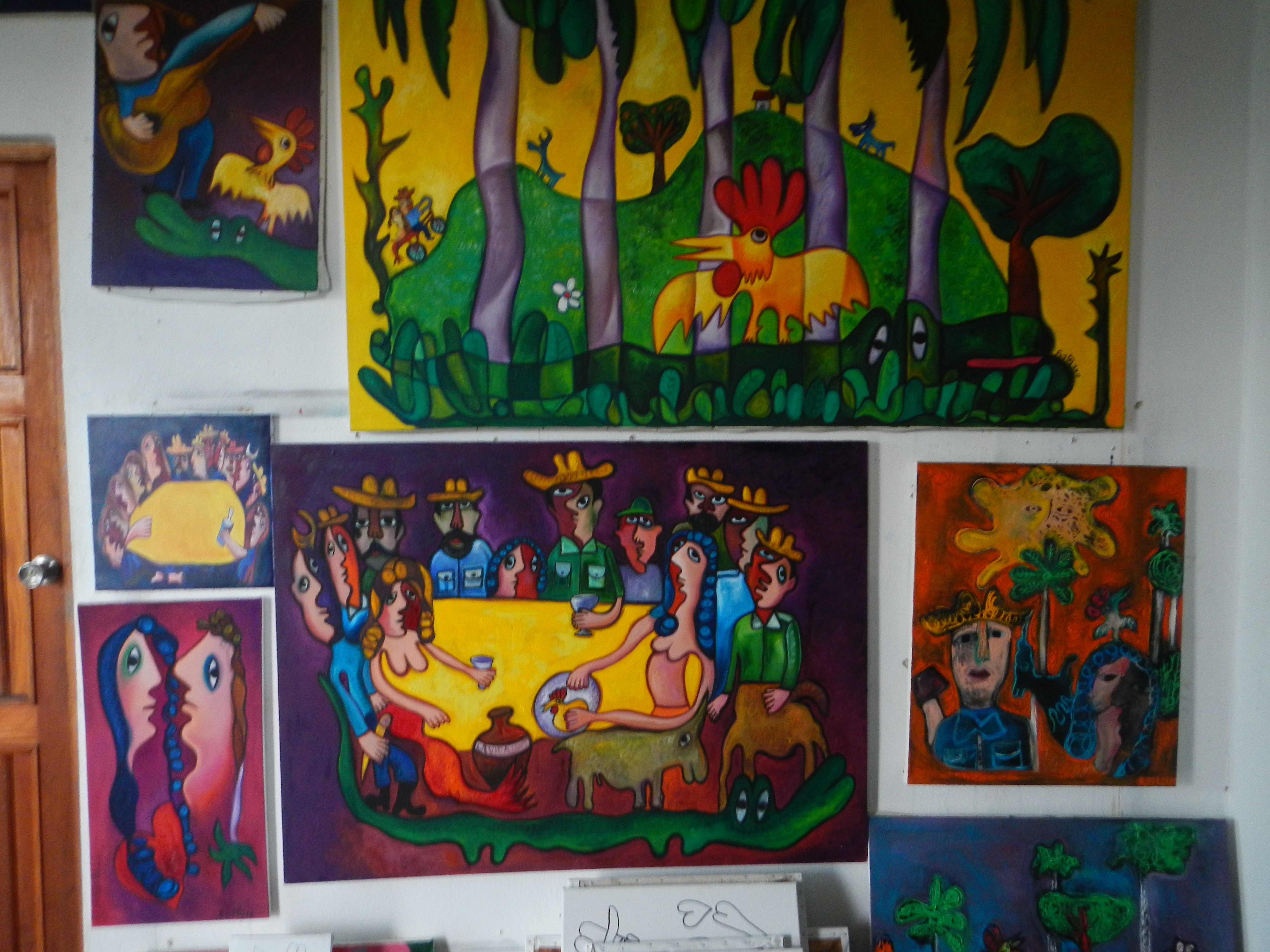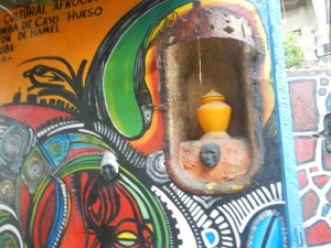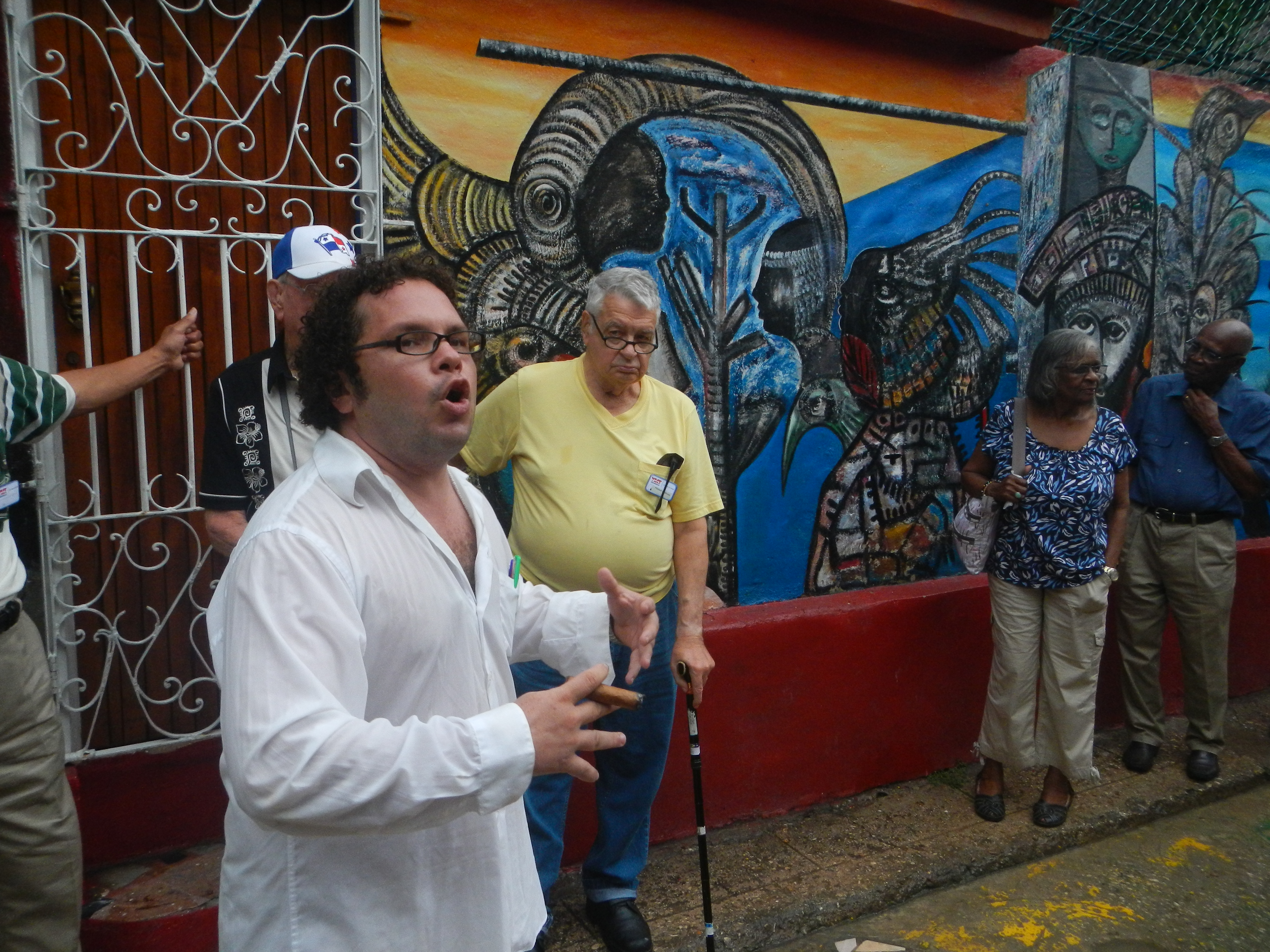 On to Calle Hamel, a neighborhood arts project in new Havana, the brainchild of a 60-year old, self-taught artist named Salvador Gonzales. We were met by the project spokesman and guide, a short, round, excited man who, in nearly flawless English, welcomed us and took us on a tour of this incredible side street, after he had loudly admonished a handful of kids who had come begging. We entered the cave-like studio/gallery of Salvador Gonzales, and there saw a number of his paintings, which were startling in their color and movement.