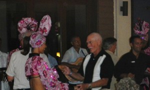 The meal was amazing. Shrimp and peppers in a crusty bread bowl, then surf and turf, with lobster and steak. The steak was a little tough, (hey, they don’t do beef in Cuba,) but the lobster was superb. And then the band and dancers took the stage, and there was nothing I could do, when approached by this lithe, cafe con leche skinned beauty, but get up and learn to salsa! And learn I did, to the best of my limited ability. 1, 2, 3; 1, 2, 3. I nearly had it. There are those in the States, and we will go into this tomorrow, who think doing salsa, listening to Cuban music, and smoking Cuban cigars is not what a “People to People” excursion should entail, but they are dead wrong. This is the culture, and I know of no better way to break down barriers than to do what the people do. We are forever graced and humbled by this opportunity.