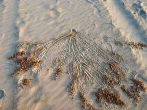 is penciled on the white paper sky.